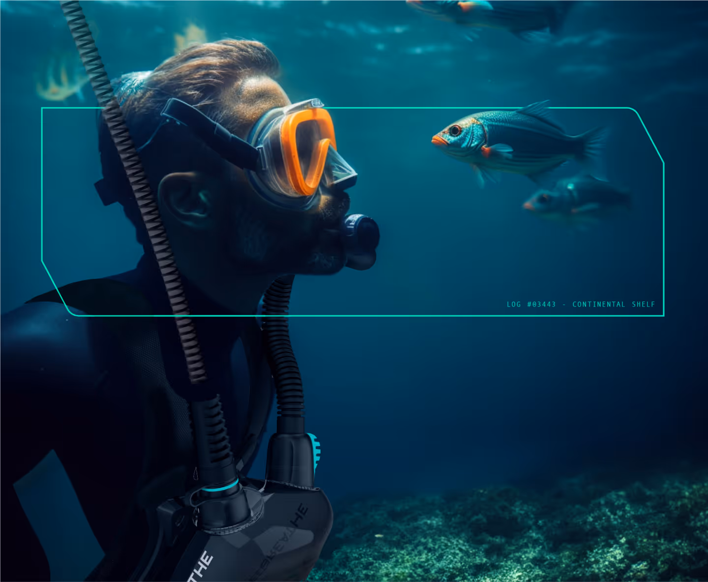 Since one of Freebreathe’s greatest points of difference is its ability to let you explore underwater for as long as you’d like, our logo resembles an infinity sign made of waves. It also communicates the safety of the brand and its easy-breathing point of difference through the two air pockets. We brought our strategy to life with a brand identity that is vibrant and immersive. The underwater world is the hero of the branding, showcasing the wonders of the ocean that Freebreathe unlocks. The bright turquoise color is a nod to the aquatic while also alluding to the fact that this is something new, exciting, and revolutionary in the underwater sports space.